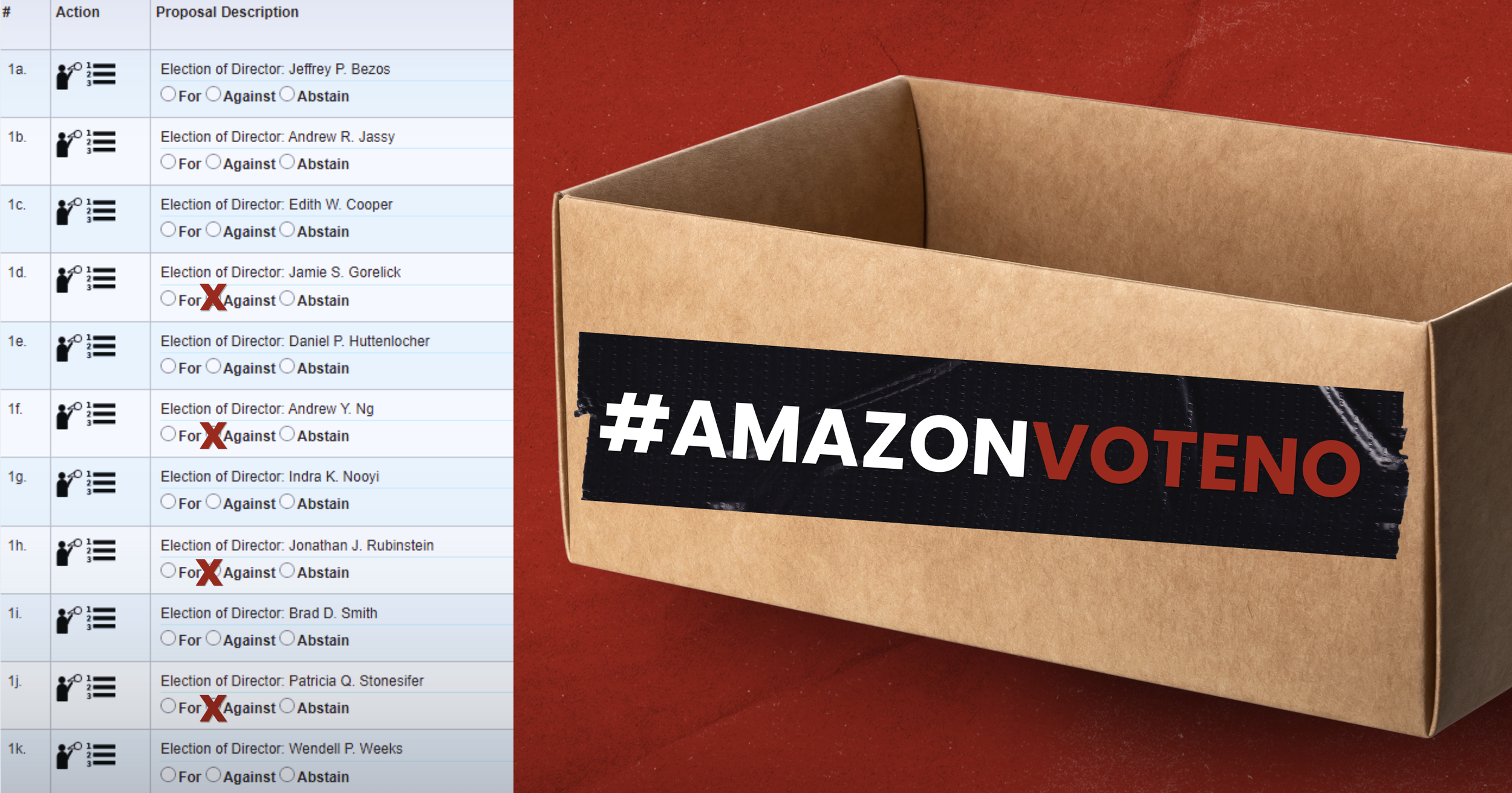 Amazon Has a History of Performative Engagement. We believe that refreshment of the Nom and Gov Committee is long overdue, and would provide the Amazon Board with an opportunity to identify directors who appreciate shareholder engagement and could oversee meaningful changes to Amazon’s governance practices. We urge Amazon investors to vote against Directors Rubinstein, Gorelick, Ng, and Stonesifer.